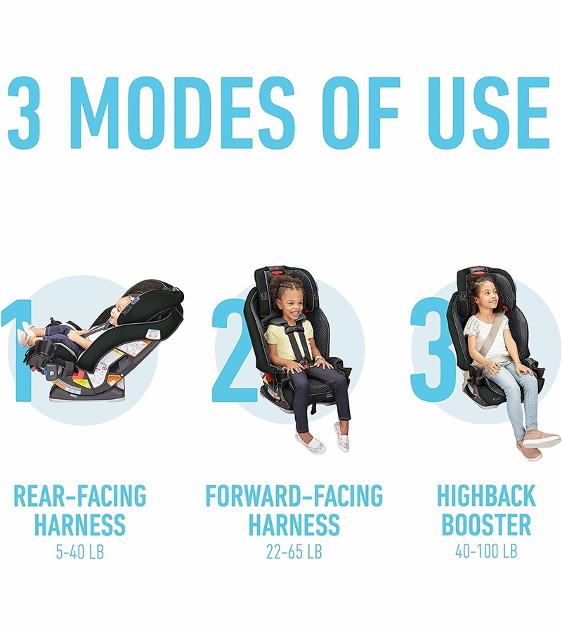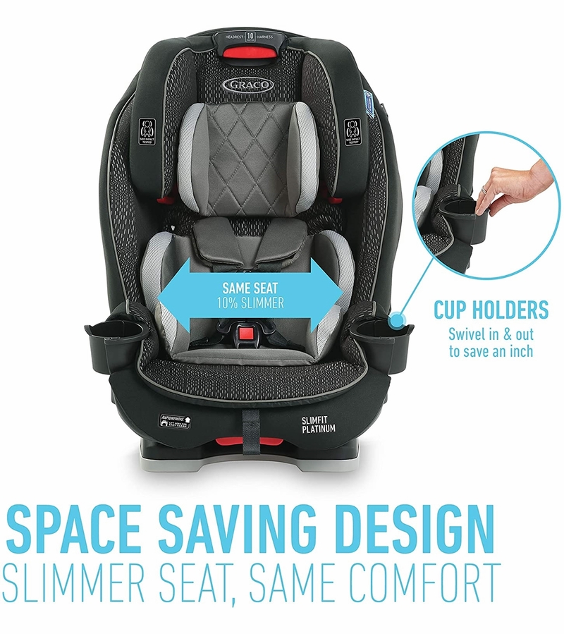 The Graco Slimfit 3 in 1 Car Seat is great versatile option that can transition from rear-facing to forward-facing and even into a high-back booster seat. The sleek design makes it ideal for smaller vehicles or for bigger families with multiple car seats. However, it might not offer as much prolonged rear-facing as the 4Ever DLX. Click the link above to learn more about how this seat is rated for safety, versatility and more to see if it’s the right fit for your family!